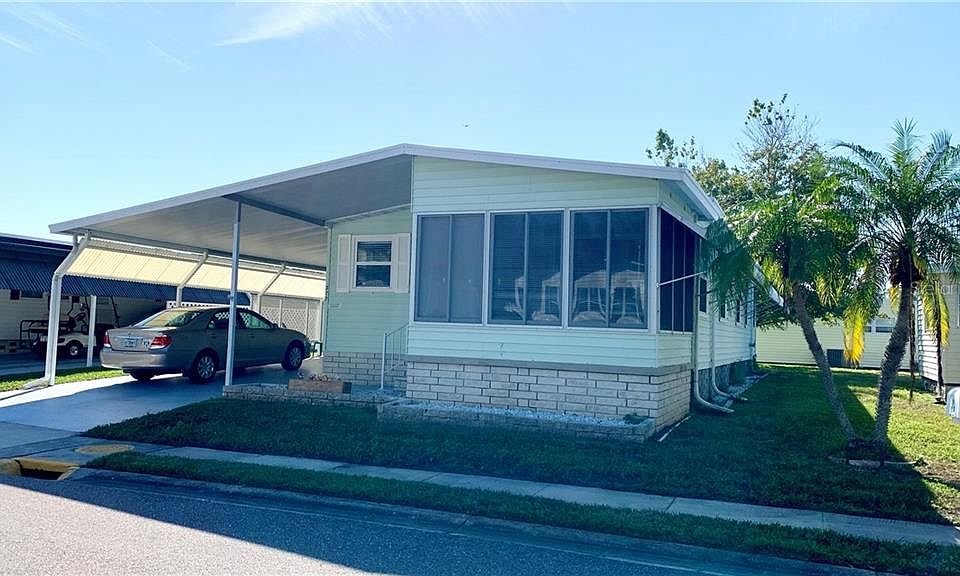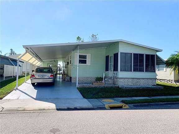 LARGE 2 BEDROOM 2 BATH BUILT IN 1980 WITH AN OPEN FLOOR PLAN WITH CENTER ISLAND BETWEEN KITCHEN/LIVING AREA. BUILT IN DINING HUTCH WITH LIGHTS. NEWER WINDOWS, A/C (2020), NEW VAPOR BARRIER IN 2018. ROOF OVER AND VINYL SIDING. AWNINGS ON THE REAR AND WEST SIDE OF HOME. ALL LAMINATE FLOORS THROUGHOUT EXCEPT THE FRONT FLORIDA ROOM THAT FACES NORTH AND HAS SIDE BY SIDE PLEXY GLASS WINDOWS. THESE WINDOWS ARE EASY TO OPEN AND CLOSE. UPDATED KITCHEN WITH NEWER CABINETS. MOSTLY FURNISHED AND WILL BE READY FOR NEW OWNER BY MID JANUARY. HURRY TO MAKE AN OFFER BEFORE ITS GONE. HOMES THIS SIZE AND CONDITION DO NOT LAST ON THE MARKET LONG. THIS 55+ COMMUNITY IS GETTING A NEW CLUBHOUSE IN 2021 AND WILL HAVE A HIGHLY SOUGHT AFTER EFFECT WHEN IT IS DONE. ALL UPGADES TO THE COMMUNITY WILL MAKE THESE HOMES MORE VALUABLE FOR THE FUTURE. 2 POOLS AND JACUZZI'S WERE UPDATED A FEW YEARS AGO AND THE FULLY COVERED SHUFFLE BOARD COURTS WERE JUST DONE A LITTLE OVER A YEAR AGO. THIS COMMUNITY SHOWS PRIDE OF OWNERSHIP AND HAS A GREAT 9 HOLE PAR 3 GOLF COURSE IN THE MIDDLE THAT IS VERY WELL MAINTAINED. YOU MUST SEE THIS HOME.