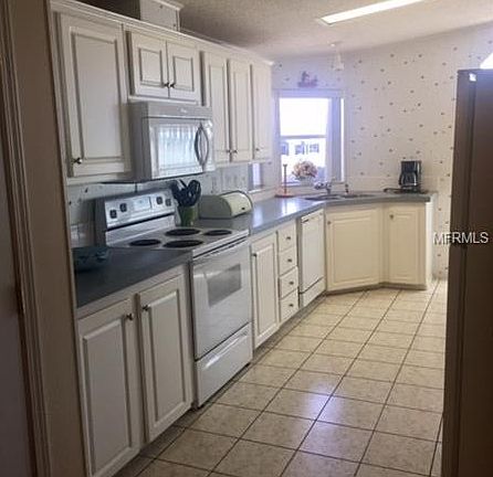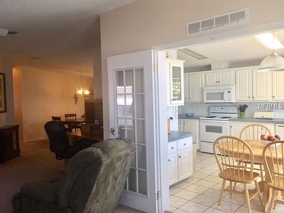 Original owner of this large open floor plan 2000 year built. Almost 1500 heated sq feet, has a large laundry room inside home with cabinets and a full size washer and dryer! There is a entry door in the utility room as well. Kitchen is a eat in with a breakfast table, lots of cabinets and storage room in this kitchen! kitchen fully equipped and has pots and pans, dishes. The living room is spacious and has a huge flat screen tv and recliners and a sofa, a computer desk as well. guest bedroom is large enough for a king size bed, master bedroom is large has a huge bedroom set and a walk in closet with shelving. the master bathroom is LARGE, vanity areas and linen closet and a large walk in shower! furnished as is. the utility shed is very large 12x16 and there is a side double entry door to drive in a golf cart! Homes shows well! Carport can easily fit 2-3 cars. central heat and air is approximately 2012, hot water heater replaced too.