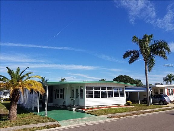 Back on the market!!! LAND SHARE IS INCLUDED in this beautifully renovated 2 bedroom, 2 bathroom unfurnished home. It has a BONUS enclosed Florida room, which is not included in the home's square footage! The ENTIRE home contains brand new flooring (no soft spots!), updated hurricane windows, and a professional paint job (interior and exterior.) Both spacious bedrooms contain built-in dressers as well. Additional upgrades have been added to both bathrooms throughout. The home hosts an open kitchen style with breakfast bar and new stainless steel refrigerator. The enormous utility shed contains a washer/dryer hookup with these appliances included. The beautiful Par-3 golf course is a stone's throw away, and visible from the Florida room's window! Walk as well to the covered shuffleboard courts, the clubhouse, fitness center, and swimming pool. Low monthly maintenance fee includes basic cable, water, sewer, trash, and lawn/maintenance services. Enjoy all the amenities and the quality of life that Fairway Village has to offer in this beautiful 55+ community.