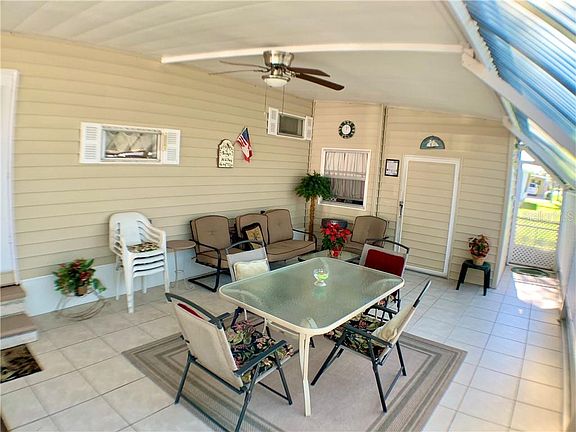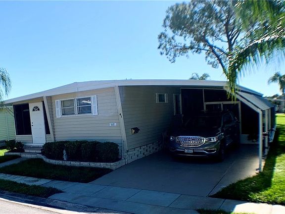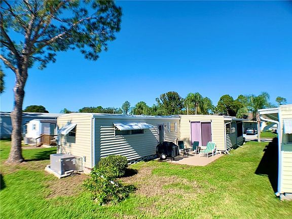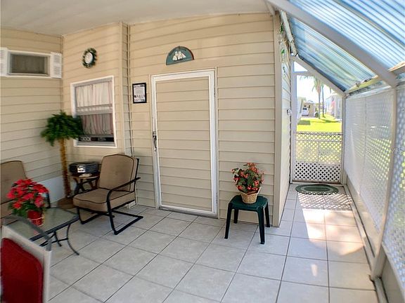 THIS HOME HAS A OPEN REAR PATIO AND A LARGE SCREENED ENCLOSED LANAI UNDER CARPORT AREA ALONG WITH A FRONT VINYL ENCLOSED FLORIDA ROOM. THE INSIDE OF THE UNIT IS THE 912 SQ FT. HOWEVER IT FEELS BIGGER WITH THESE ADDITIONAL ROOMS. DON'T RULE OUT THIS HOME DUE TO THE SQ FT ON PUBLIC RECORDS. FULLY FURNISHED AND READY FOR A NEW OWNER. THE SPLIT BEDROOM PLAN WITH BEDROOMS ON EACH END OF THE HOUSE IS GREAT FOR WHEN YOU HAVE GUESTS VISITING. ROOF OVER WAS INSTALLED IN 2012 AND A/C IS 2015 WITH NEW DUCT WORK IN 2019. GREAT HOME FOR THE PRICE. LOTS OF CLOSETS AND THE BRIGHT ROOMS MAKE IT CHEERFUL. THE 55+ RESIDENT OWNED COMMUNITY IS ONE OF A KIND WITH A 9 HOLE PAR 3 GOLF COURSE IN THE MIDDLE. THE 8 FULLY COVERED SHUFFLE BOARD COURTS THAT YOU CAN PLAY ON RAIN OR SHINE. 2 POOLS AND JACUZZI'S AND A FITNESS AND BILLIARD ROOM WITH 2 POOL TABLES. COME LOOK AND SEE HOW NICE FLORIDA RETIREMENT LIVING CAN BE.