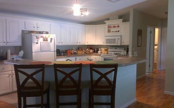 LOCATION, LOCATION, LOCATION!!!!!NEWER HOME IN COMMUNITY ON THE GOLF COURSE! THIS HOME WAS BUILT IN 2009 AND HAS CATHEDRAL CEILINGS WITH ALL LAMINATED WOOD FLOORS THROUGHOUT. KITCHEN AND DINING ROOM ARE OPEN TO THE LIVING AREA. YOU CAN CLOSE OFF THE FLORIDA ROOM THAT OVERLOOKS THE GOLF COURSE AND USE THIS AS ANOTHER ROOM OR LEAVE OPEN AS PART OF THE LIVING AREA. INSIDE LAUNDRY ROOM WITH STORAGE. THE KITCHEN HAS AN ISLAND IN THE MIDDLE WITH A LARGE BREAKFAST BAR. ALL WALLS ARE DRYWALLED AND PAINTED NUETRAL THROUGHOUT. MASTERBEDROOM IS LARGE ENOUGH FOR A KING SIZE BED AND HAS A WALK IN CLOSET. IF YOU LIVE IN FLORIDA YEAR ROUND THIS IS A MUST SEE. YOU HAVE THE PERFECT LOCATION WITH A NEWER HOME!!!! OWNERS HAVE MORE THAN THE ASKING PRICE INTO THIS HOME... COME TAKE A LOOK AND MAKE AN OFFER. THIS HOME SHOULD SELL QUICKLY. YOU CAN WALK TO ALL ACTIVITIES. THE COMMUNITY IS A 55+ AND HAS EVERYTHING YOU COULD WANT FOR A MONTHLY FEE OF $215.