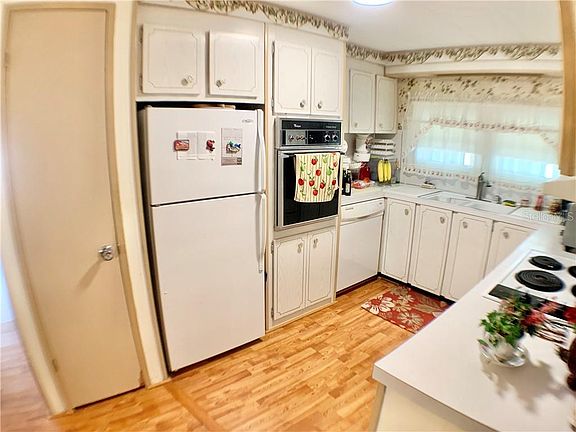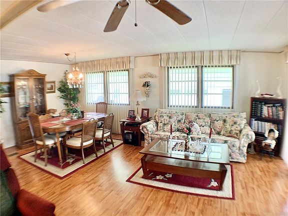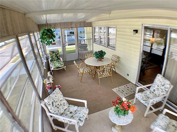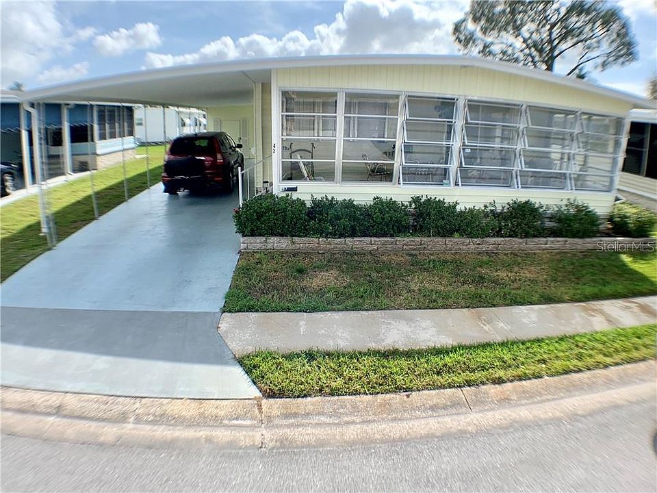 LARGE HOME WITH A FRONT GLASS ENCLOSED FLORIDA ROOM AND ONE OF THE FEW IN THE COMMUNITY THAT HAS AN INSIDE LAUNDRY ROOM. LAMINATE FLOORS THROUGHOUT MAIN LIVING AREAS. ROOF RECOATED APRIL 2020. FURNITURE IS OPTIONAL. BOTH LARGE BEDROOMS HAVE THEIR OWN PERSONAL BATHROOM ATTACHED. DRIVEWAY IS BIG AND ENOUGH ROOM FOR 3 CARS OR PUT A SCREEN ROOM UNDER CRAPORT. GREAT LOCATION CLOSE TO CLUBHOUSE AND GOLF COURSE. THE COMMUNITY SPEAKS FOR ITSELF AND HAS ALL THE ACTIVITIES YOU CAN THINK OF TO CHOOSE FROM. THERE IS EVEN A 9 HOLE GOLF COURSE IN THE MIDDLE OF THE COMMUNITY FOR YOU TO PLAY ON EVERYDAY IF YOU CHOOSE FOR A SMALL YEARLY FEE OR PAY AS YOU PLAY. ALSO SHUFFLEBOARD COURTS AND A FITNESS ROOM. LIST PRICE INCLUDES THE SHARE VALUE OF $55,000.