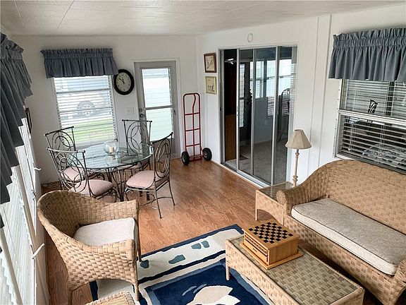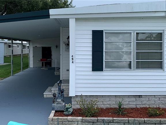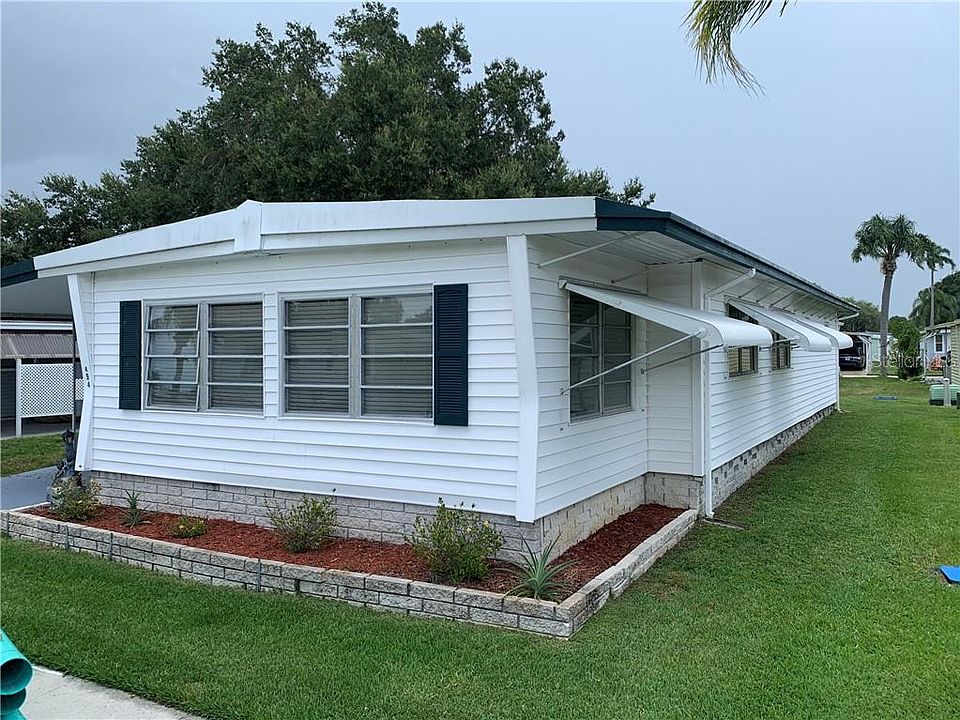 A 2 BEDROOM 2 BATH SPACIOUS HOME IN A GREAT LOCATION WITH IN WALKING DISTANCE TO BOTH POOLS AND GOLFING. THE HOME HAS BEEN A RENTAL FOR THE LAST 15 YEARS. HOWEVER, IT IS IN GREAT SHAPE WITH NEWER LAMINATED FLOORS IN KITCHEN AND FLORIDA ROOM. BRAND NEW CARPET IN LIVING AREAS AND FULLY FURNISHED WITH NICE FURNITURE. ROOF OVER AND VINYL SIDED FOR GOOD INSULATION. NEWER APPLIANCES AND A LARGE PANTRY IN KITCHEN. GREAT SIZE BEDROOMS AND MASTER HAS 3 CLOSETS WITH ONE BEING A WALK-IN. LIGHT AND BRIGHT THROUGHOUT. THE FRONT FLORIDA ROOM HAS DUCTS THAT ARE FROM THE CENTRAL HEAT AND AIR WHICH REFLECT IN THE SQ FT. EATING BAR IN KITCHEN AND A FORMAL DINING ROOM. READY FOR IMMEDIATE OCCUPANCY. NEAT AND CLEAN AND FRESHLY PAINTED. HOME SITS HIGH ON THE LOT AND THE CARPORT CAN HOLD 3 CARS OR A PATIO SET AND 2 CARS IN THE DRIVEWAY. THE 55+ COMMUNITY SPEAKS FOR ITSELF. AS SOON AS YOU DRIVE IN AND SEE THE LARGE PALM TREE LINED WIDE STREETS AND HALF MOON LAKE WITH A BEAUTIFUL FOUNTAIN IT WILL BE SURE TO WOW YOU. THE PAR 3 GOLF COURSE IS JUST AN EXTRA BONUS FOR RESIDENTS ONLY AND YOU CAN PLAY EVERYDAY FOR A SMALL YEARLY FEE OR PAY AS YOU PLAY. 8 COVERED SHUFFLE BOARD COURTS AND SO MANY ACTIVITIES TO CHOOSE FROM INSIDE THE ACTIVE CLUBHOUSE. COME LOOK FOR YOURSELF AT THIS FABULOUS RETIREMENT COMMUNITY. LIST PRICE INCLUDES THE LAND SHARE IN THE COMMUNITY OF $55,000.