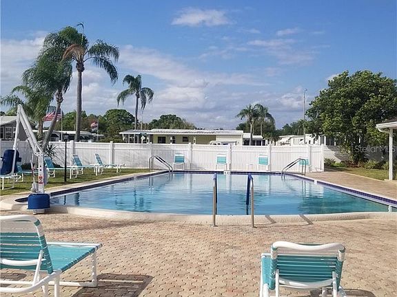 AFFORDABLE FLORIDA LIVING IN RESORT STYLE COMMUNITY under $80K! Home has 2 bedrooms and 2 full bathrooms. Open Dining and Kitchen and Living area. Large enclosed front porch and Large carport with storage unit that has washer and dryer inside. Community is VERY ACTIVE with a private GOLF COURSE, and 2 BEAUTIFULY COMMUNITY POOLS, Jacuzzi, Shuffleboard, Recreational activities, Lake which can be accessed for Fishing, Social Activities and so much more! Home is in need of some updates but GET THIS WHILE YOU CAN! Sales price includes share value of $55,000.