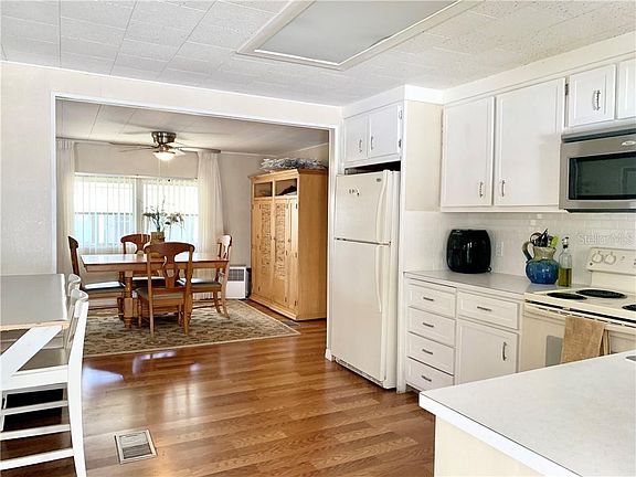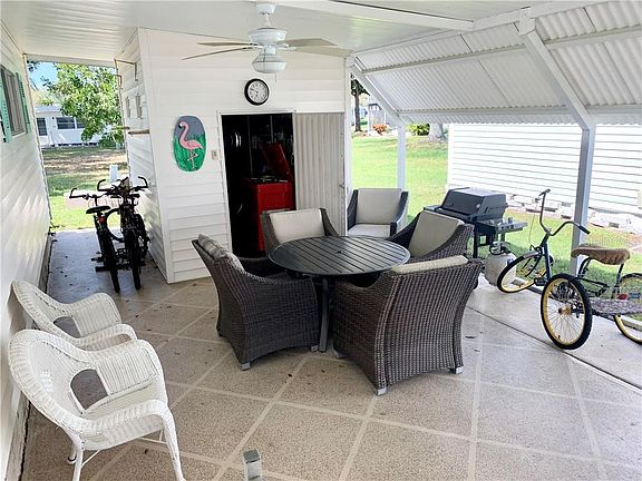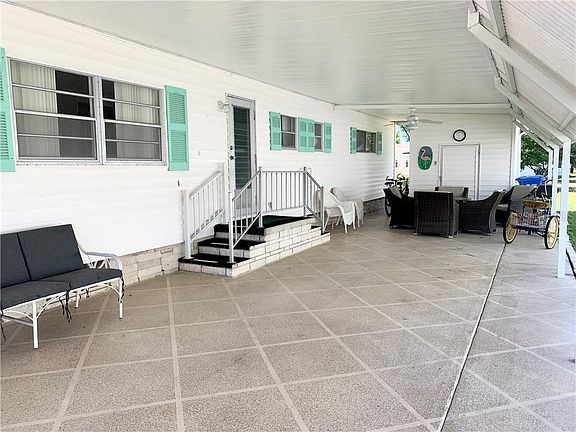 WHAT A GREAT LOCATION IN THE COMMUNITY. THE BACKYARD HAS A PARK SETTING WITH A LARGE DISTANCE BETWEEN THE HOMES BEHIND THIS UNIT. HOME IS CLOSE TO THE OFFICE AND NEW CLUBHOUSE BEING BUILT IN 2021. EXTENDED DECORATIVE DRIVEWAY THAT CAN FIT 3 CARS IF NEEDED. A FRONT OPEN PORCH AND FLORIDA ROOM THAT FACES EAST TO HAVE YOUR MORNING COFFEE. NEW VAPOR BARRIER IN 2020. METAL ROOF OVER IN GREAT CONDITION. OPEN AND BRIGHT THROUGHOUT THE MAIN LIVING AREAS OF THE HOME. KITCHEN IS OPEN TO LIVING AND DINING ROOMS. NEUTRAL COLORS THROUGHOUT WITH LAMINATE FLOORS. LARGE BEDROOMS AND TEXTURED PAINTED WALLS. MINIMAL FURNITURE WILL STAY. WASHER AND DRYER DO NOT CONVEY. IF LOCATION IS WHAT YOUR LOOKING FOR THIS MIGHT BE THE ONE. THE 55+ COMMUNITY IS SURELY TO PEAK YOUR INTEREST WITH THE LAKE AND 9 HOLE PAR 3 GOLF COURSE IN THE MIDDLE FOR ONLY SHARE HOLDERS OF THE COMMUNITY TO ENJOY. AS SOON AS THE CLUBHOUSE IS BUILT THIS WILL BE A VERY ACTIVE CLUBHOUSE WITH ALL THE ACTIVITIES YOU COULD WANT. BETTER HURRY BEFORE THIS ONE IS GONE...