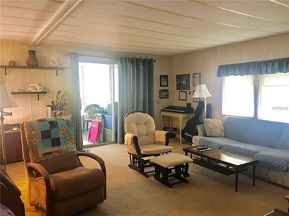 PRICED LOW ENOUGH TO MAKE THIS HOME YOUR OWN. HOME HAS A NEW ROOF OVER, IF YOU DO THE FLOORS AND UPDATE AS YOU WISH YOU CAN HAVE A GREAT HOME WITH LOW TAXES. LIGHT AND BRIGHT THROUGHOUT. WALK IN CLOSET IN THE MASTER BEDROOM. LIVINGROOM FURNITURE AND MASTER BEDROOM FURNITURE STAY. THE T.V., DININGROOM SET AND ALL ITEMS IN THE 2ND BEDROOM GO WITH THE OWNER. ALL APPLIANCES STAY WITH THE HOME. MAKE AN OFFER TODAY. THIS COMMUNITY IS ONE OF A KIND AND HAS A 9 HOLE PAR 3 GOLF COURSE IN THE MIDDLE ALONG WITH ALL THE ACTIVITIES ONE COULD ASK FOR. MUST SEE THIS 5 STAR 55+ COMMUNITY.