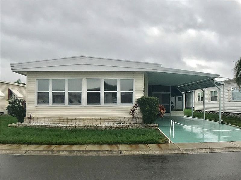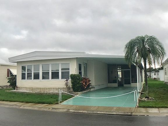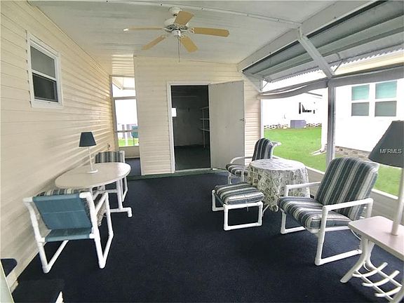WOW...OPEN FLOOR PLAN AND LAMINATED FLOORS THROUGHOUT. NEWER WINDOWS AND A 3 YEAR OLD A/C UNIT WITH NEW DUCT WORK AND VAPOR BARRIER. LARGE WALK IN SHOWER IN MASTER BATHROOM. EXTRA LARGE SHED WITH WASHER AND DRYER. FLAT TOP STOVE AND A SIDE BY SIDE REFRIGERATOR WITH ICE AND WATER IN THE DOOR. MINIMAL FURNITURE (WHAT IS THERE WILL STAY). EXTENDED DRIVEWAY AND A BEAUTIFUL SCREENED IN LANAI UNDER CARPORT. POURED CONCRETE SLAB BEHIND THE HOUSE FOR BBQ GRILL AND TO SIT IN THE SUN. FLORIDA ROOM ACROSS THE FRONT OF THE HOME HAS BEEN MADE PART OF THE LIVING SPACE. THIS HOME APPEARS LARGER THAN IT SAYS IN PUBLIC RECORDS. COME SEE THIS HOME TODAY BEFORE IT IS GONE! THIS 55+ COMMUNITY IS ONE OF A KIND AND THE RESIDENTS SHOW PRIDE OF OWNERSHIP IN THE WAY THEY MAINTAIN THEIR HOMES. 9 HOLE PAR 3 GOLF COURSE IN THE MIDDLE OF THE COMMUNITY AND IT IS ONLY FOR RESIDENTS USE. $305.00 A YEAR MEMBERSHIP OR PAY AS YOU PLAY FOR $9.00. THE NEW FULLY COVERED SHUFFLEBOARD COURTS ARE IN TIP TOP SHAPE AND ARE GREAT FOR THOSE WHO ARE COMPETITIVE IN NATURE. SO MANY ACTIVITES TO CHOOSE FROM WHILE YOU ARE RETIRED. YOU MUST CHECK THIS COMMUNITY OUT FOR YOURSELF. ENJOY THE FLORIDA LIFESTYLE.