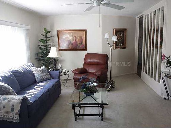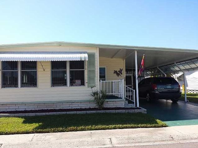 THIS HOME HAS BEEN WELL MAINTAINED THROUGHOUT THE YEARS WITH A ROOF OVER AND VINYL SIDING ALONG WITH ALL NEW WINDOWS AND AN UPDATED KITCHEN. IT HAS BEEN PAINTED THROUGHOUT WITH NEUTRAL COLORS. THE FLOORING LOOKS LIKE CERAMIC TILE BUT IS VINYL IN THE KITCHEN AND BATHROOMS. BOTH BATHROOMS ARE LARGE AND THE BEDROOMS ARE GOOD SIZE AS WELL. MASTER BEDROOM HAS A WALK IN CLOSET AND DOUBLE SINKS IN BATH. THERE IS A FLORIDA ROOM ON THE FRONT OF THE HOME AND A SCREEN ROOM ON THE NORTH SIDE UNDER THE CARPORT AND HAS AN EXTENDED DRIVEWAY. ALL FURNITURE STAYS EXCEPT WHAT IS LABELED. THE LOCATION OF THIS HOME IS ONE OF A KIND AND IS VERY CONVIENENT TO THE SOUTH POOL. IF YOU ARE LOOKING FOR A HOME THAT IS WELL MAINTAINED AND NEEDS NO REPAIRS LOOK NO FURTHER. THIS HOME IS READY FOR A NEW OWNER WHO WANTS TO ENJOY THE FLORIDA SUNSHINE. THIS HOME IS A MUST SEE. THE COMMUNITY SELLS ITSELF WITH A 9 HOLE PAR 3 GOLF COURSE IN THE MIDDLE AND ALL THE ACTIVITIES YOU MIGHT WANT. THIS IS A 55+ COMMUNITY AND IS VERY WELL MAINTAINED.