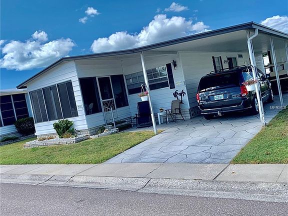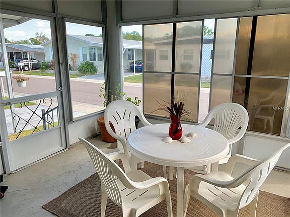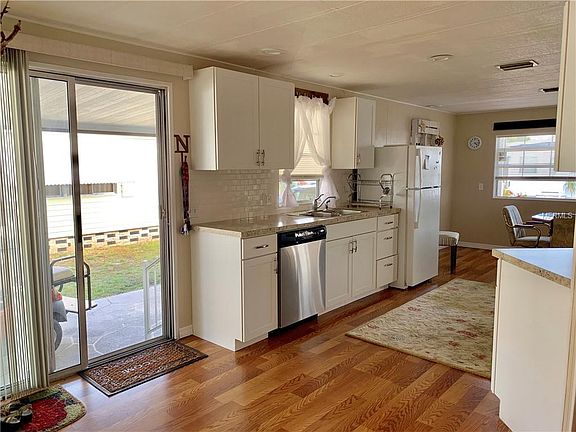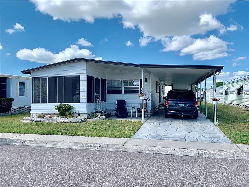 ALL NEW FLOORS THROUGHOUT. ROOF OVER AND VINYL SIDING. BRAND NEW KITCHEN CABINETS AND UPDATED APPLIANCES WITH ICE MAKER IN REFRIGERATOR. OPEN AND VERY CHEERFUL WHEN YOU WALK THROUGH THE SIDE SLIDING GLASS DOORS. MOST FURNITURE WILL STAY BUT THERE ARE A FEW ITEMS THAT WILL NOT. LARGE MASTER BEDROOM AND A WALK IN CLOSET AND SHOWER. FRONT PORCH/FLORIDA ROOM HAS SLIDING VINYL WINDOWS. THESE PANELS CAN BE REMOVED AND MAKE A SCREEN ROOM OR LEAVE THEM IN FOR A PRIVATE LANAI. WATER HEATER NEW IN 2018 AND A/C UNIT NEW IN 2016. IF LARGE IS WHAT YOU ARE AFTER THIS MIGHT BE THE ONE. COME LOOK AND SEE IF IT IS THE ONE FOR YOU. THE 55+ COMMUNITY IS DEFINITELY NOT ONE TO PASS ON. THIS 5 STAR COMMUNITY SPEAKS FOR ITSELF. ONCE YOU DRIVE IN AND SEE THE LARGE LAKE WITH COLORFUL FOUNTAIN AND WIDE OPEN VIEWS ALONG WITH PALM TREE LINED STREETS AND SIDEWALKS THROUGHOUT. THIS MAKES THE COMMUNITY ONE YOU WILL WANT TO LIVE IN AND ENJOY FOR YOUR RETIREMENT YEARS. ALL THE ACTIVITIES YOU COULD CHOOSE FROM INCLUDING A 9 HOLE PAR 3 GOLF COURSE THAT YOU CAN PLAY ON EVERYDAY FOR A SMALL YEARLY FEE OF $305 OR PAY AS YOU PLAY. THE 8 LANE COVERED SHUFFLE BOARD COURTS CAN BE UTILIZED ALL YEAR LONG RAIN OR SHINE. IF THIS IS WHAT YOU HAVE BEEN WAITING FOR TO RETIRE... YOU FOUND IT.