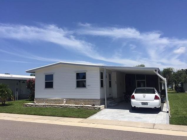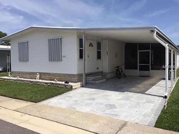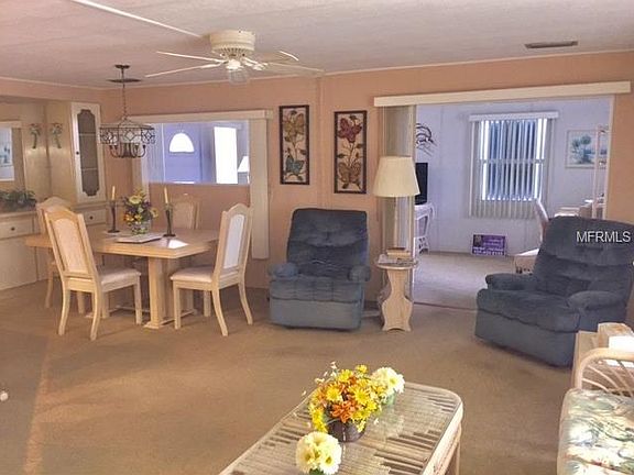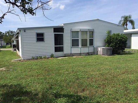 1980 two bedroom two baths. Almost 1400 heated sq feet. Furnished nicely!Beige chair and 3 TVS do not convey! Newer kitchen cabinets and appliances,laminated floors in the kitchen, hallway, master bedroom and master bathroom and vanity/dressing area. Open Floor plan! New Windows throughout the home and entry doors. Decorative driveway and widened driveway. Extra large screened room, with party lights. The utility shed is huge and has lots of storage and a full size washer and dryer. Patio furniture included and a gas grill. Just need to bring your clothes. Community has two large heated pools and Jacuzzis. Par three golf course 9 hole Hurricane panels for the front Florida room!
