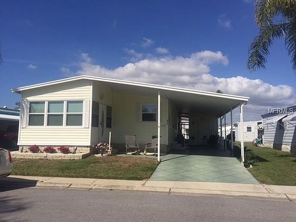 TWO BEDROOM TWO BATHS, ROOF OVER OPEN FLOORPLAN, FURNISHED, FLORIDA ROOM FACES SOUTH. FLORIDA ROOM ALSO HAS NEW WINDOWS AND CARPET. LOVELY ENTRANCE DOOR TO FLORIDA ROOM. TWO CAR CARPORT, AND A UTILITY SHED WITH LOTS OF STORAGE ROOM AND A FULL SIZE WASHER AND DRYER. BEHIND THE SHED IS A SCREENED ROOM WITH A SLIDING SCREEN DOOR EXTRA WIDE TO DRIVE YOUR GOLF CART INTO. THERE IS A ROOF OVER THIS AS WELL. ENTRY DOOR TO THE HOME HAS BEEN REPLACED ALSO. LARGE KITCHEN WITH A BREAKFAST ISLAND, EXTRA CABINETS, PANTRY CLOSET. ALL APPLIANCES CONVEY. LIVING ROOM HAS A FLAT SCREEN TV. LAMINATED FLOORS THROUGHOUT, EXCEPT BATHROOMS AND KITCHEN. PLYWOOD FLOORING UNDER THE LAMINATED FLOORS IN LIVING ROOM AND DINING ROOM, TILED FLOORS IN KITCHEN. VYNL IN BATHROOMS. MASTER BR HAS A WALK IN CLOSET AND A SEPARATE VANITY AREA FROM THE SHOWER AND COMODE AREA.THERE IS A PAR 3 GOLF COURSE AND 2 HEATED POOLS, SHUFFLE BOARD AND A GUARD AT GATE ENTRANCE FROM 6 P.M TO 6 A.M. FIVE STAR COMMUNITY.
