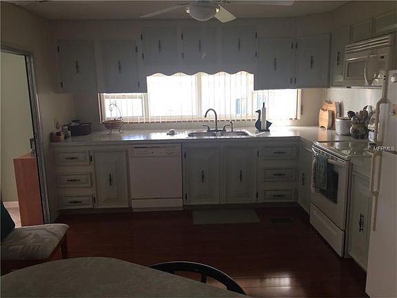 LOCATION, LOCATION, LOCATION. THIS HOME IS CLOSE TO ALL THE AMMENTITIES IN THE COMMUNITY. WALKING DISTANCE TO EVERYTHING WITH A VIEW OF THE LAKE FROM THE BACK PATIO DECK. ENCLOSED FLORIDA ROOM IS LIGHT AND BRIGHT WITH CERAMIC TILE. LARGE OPEN KITCHEN WITH GREAT COUNTER SPACE FOR THE CHEF. A WALK IN PANTRY AND LAMINATED WOOD FLOORS IN KITCHEN. BOTH BEDROOMS HAVE A BATHROOM ON SUITE. THERE IS A WALK IN CLOSET IN THE MASTER WITH ANOTHER CLOSET AS WELL. SOME ROOMS HAVE DRYWALL AND NICELY DECORATED THROUGHOUT. EAST AND SOUTH SIDE OF THE HOME HAS HURRICANE SHUTTERS. THIS HOME IS CLEAN AND NEAT AND READY FOR A NEW OWNER. COME TAKE A LOOK. THE 55+ COMMUNITY SPEAKS FOR ITSELF AND HAS ALL THE ACTIVITIES YOU COULD WANT. ENJOY THE 2 HEATED POOLS AND JACUZZI'S ALONG WITH THE 9 HOLE PAR 3 GOLF COURSE IN THE MIDDLE. PALM TREE LINED STREETS SHOWS HOW WELL CARED FOR THE COMMUNITY IS. COME SEE FOR YOURSELF... YOU WON'T BE DISAPPOINTED.