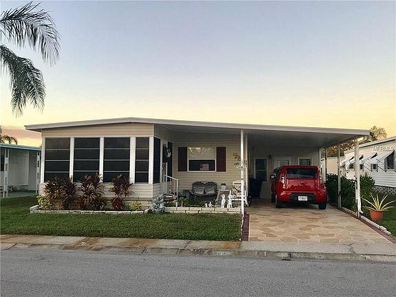 UNFURNISHED HOME AND LOTS OF ROOM FOR STORAGE. 2 BEDROOM 2 BATH CLOSE TO SOUTH POOL. FRONT FLORIDA ROOM FACES SOUTH AND HAS VINYL WINDOWS THAT OPEN FOR A SCREEN ROOM. LAMINATED WOOD FLOORS AND PLYWOOD UNDERNEATH. LARGE MASTER BEDROOM WITH WALK IN CLOSET AND SHOWER. LARGE STORAGE ROOM ON SIDE UNDER CARPORT. PRICE ON THIS HOME CANNOT BE BEAT. THE 55+ COMMUNITY SPEAKS FOR ITSELF. HAS A CLUBHOUSE AND 2 POOLS ALONG WITH A 9 HOLE PAR 3 GOLF COURSE IN THE MIDDLE. ALSO FULLY ENCLOSED SHUFFLE BOARD COURTS AND A FITNESS ROOM. COME SEE THIS COMMUNITY AND THE RETIREMENT LIFESTYLE.