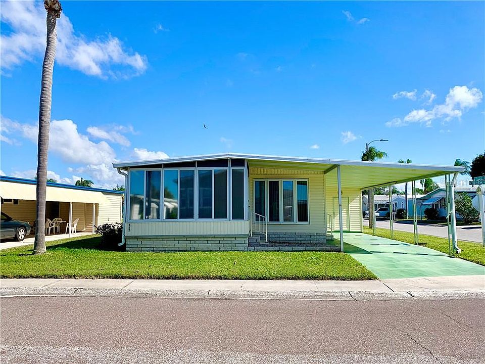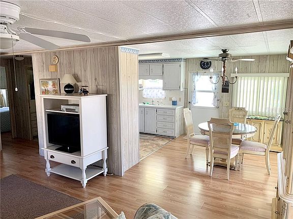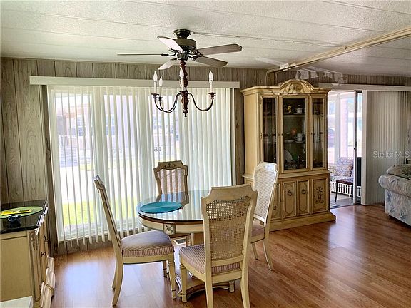 2 BEDROOM 2 BATH HOME IN A GREAT LOCATION ACROSS FROM THE SOUTH POOL ON A CORNER LOT. SUPER CUTE AND THE PERFECT SIZE FOR 2 TO LIVE COMFORTABLY. NEWER WINDOWS, 2016 ROOF OVER, 2020 A/C, NEWER APPLIANCES AND FULLY FURNISHED. 2 LARGE BATHROOMS ONE IS IN THE MASTER BEDROOM. FRONT ENCLOSED FLORIDA ROOM WITH TENTED WINDOWS TO KEEP THE HEAT OUT WHEN THE SUN IS SETTING IN THE WEST. WHOLE HOUSE HAS 3/4 INCH PLYWOOD FLOORS UNDER LAMINATED FLOORS THROUGHOUT MOST OF THE HOME. FLORIDA ROOM HAS CERAMIC TILE AND KITCHEN/BATHROOMS HAVE NEWER FLOORS AS WELL. HOME HAS ORIGINAL PANELING WHICH IS IN GREAT SHAPE. THERE IS A BACK DOOR FROM THE SPARE ROOM THAT GOES INTO THE SHED WHERE LAUNDRY IS LOCATED. JUST LIKE HAVING AN INSIDE LAUNDRY ROOM. THE DRIVEWAY CAN FIT 3 CARS EASILY, OR 2 CARS AND GOLF CART. YOU CAN WALK ACROSS THE STREET TO ENJOY THE SOUTH POOL AND JACUZZI ANYTIME OF THE DAY. THE 55+ FAIRWAY VILLAGE COMMUNITY HAS A 9 HOLE PAR 3 GOLF COURSE IN THE MIDDLE THAT YOU CAN PLAY ON EVERYDAY FOR A SMALL YEARLY FEE OR PAY $11.00 EVERYTIME YOU WANT TO PLAY. 2 POOLS AND JACUZZI'S AND 8 FULLY COVERED SHUFFLE BOARD COURTS. THE FRONT 5 ACRE LAKE IS GREAT FOR FISHING AND IS CATCH AND RELEASE. IF YOUR READY FOR A GREAT PLACE TO CALL HOME AND ENJOY YOUR RETIREMENT...THIS IS IT! COME LOOK RIGHT AWAY! THIS HOME IS NOT IN THE PET SECTION AND DOES NOT ALLOW PETS.