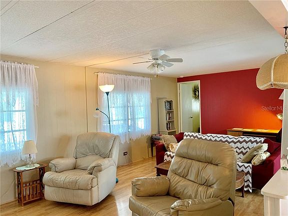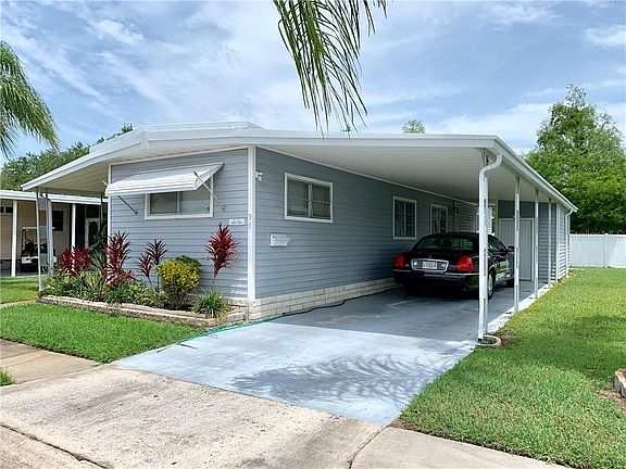 THIS SINGLE WIDE MOBILE HOME IN THE PET SECTION IS LARGER THAN MOST DOUBLE WIDE HOMES. WITH OVER 1100 SQ FT AND A SPACIOUS LIVING/DINING ROOM COMBO. THE LARGE KITCHEN HAS SO MUCH CABINET SPACE YOU WILL NOT HAVE A HARD TIME FINDING A PLACE FOR EVERYTHING. THE MASTER BEDROOM STRETCHES ACROSS THE WHOLE BACK OF THE HOUSE AND HAS 2 LARGE SIZE CLOSETS. SPLIT BEDROOM PLAN WITH A BEDROOM AND BATHROOM ON EACH END OF THE HOUSE. THE FRONT FLORIDA ROOM IS SPACIOUS AND HAS WINDOWS ALL THE WAY AROUND. LONG CARPORT CAN HOLD 3 CARS. THIS HOME BACKS TO THE PVC FENCE FOR PRIVACY. PET SECTION ALLOWS 1 PET UP TO 45 LBS TO LIVE IN THE HOME. LAMINATE FLOORS THROUGHOUT. ALL NEW PLUMBING UNDER THE HOME. THE 55+ COMMUNITY HAS SO MANY ACTIVITIES TO CHOOSE FROM OR JUST RELAX BY THE 2 POOLS. THE 9 HOLE PAR 3 GOLF COURSE IS SO WELL KEPT YOU WILL WANT TO PLAY EVERYDAY. COME ENJOY RETIREMENT.