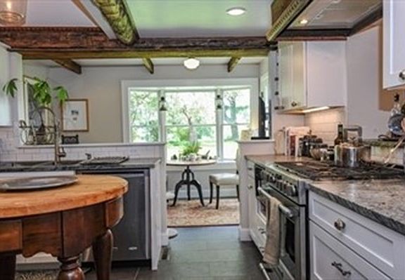 Beautifully renovated farmhouse located by the South Amherst Common with magnificent views!! The best of both worlds blending new construction and new systems with history & old world charm! You CAN have it all - Contemporary kitchen, leathered granite, stainless appliances, stone, exposed beams. Flooded with morning light, 4 bedrooms, 2.5 baths with a marvelous primary en suite with walk-in shower & dressing room/closet. Walk to the South Amherst Library, Mt Pollux conservation area, Robert Frost trail - just up the road from the bike path! Enjoy the oversized two car garage, lovely yard with deck, patio & covered porch with VIEWS! Charm, location & incomparable design blended into your magical, dream home. Come see!