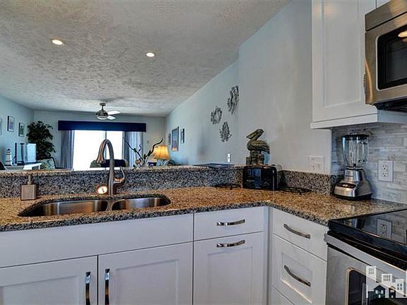 Oceanfront beauty! This 2 bedroom top level condo offers spectacular ocean views. You'll love the updated interior. A complete kitchen renovation was completed less than one year ago including new top of line stainless appliances, beautiful granite countertops, and white cabinetry finished off with crown molding. Tastefully decorated with all furnishings to remain, including 3 flat screen televisions, for a turn key experience. Oceanfront master bedroom opens onto extended balcony giving you a generous space for enjoying the sights and sounds of the beach. Computer nook located in the hallway and the computer and printer are both included. The sliding glass doors have been replaced and are coastal rated and the hurricane shutters are included too. Outdoor pool is only a few steps