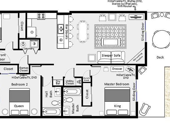 • Master Downstairs, Ceiling Fan(s), Furnished, Blinds/Shades