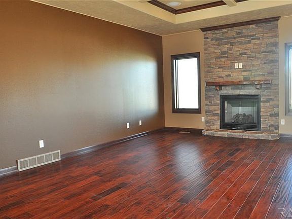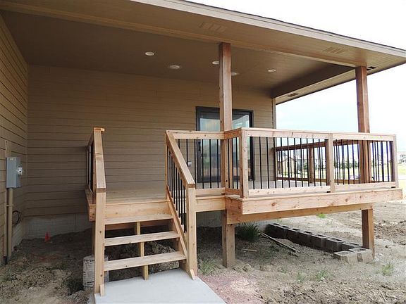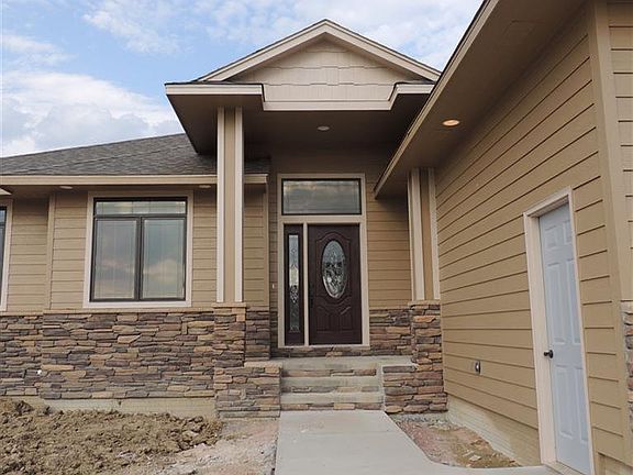 Spacious ranch on corner lot. Covered cement entry area w/rock trim leads to spacious foyer w/ceramic floors. This opens to living room w/tall coffered ceilings, gas fireplace w/log mantel & rock wall. Come in from the garage to a laundry room that leads to kitchen w/knotty alder cabinets & smooth close on the doors. Dining room has a great view off the covered deck(10x16) looking to the southeast. Kitchen, dining, & living room have engineered wood floors. Master bedroom has tray ceiling, crown molding & rope light to accent room. Master bath has bi-level granite counter tops, walk-in ceramic tiled shower, heated floors & spacious walk-in closet w/shelving. House is wired for surround system w/speakers in 4 area's. There are sod & a sprinkler system installed. The seller has stubbed in the basement for 2 bed