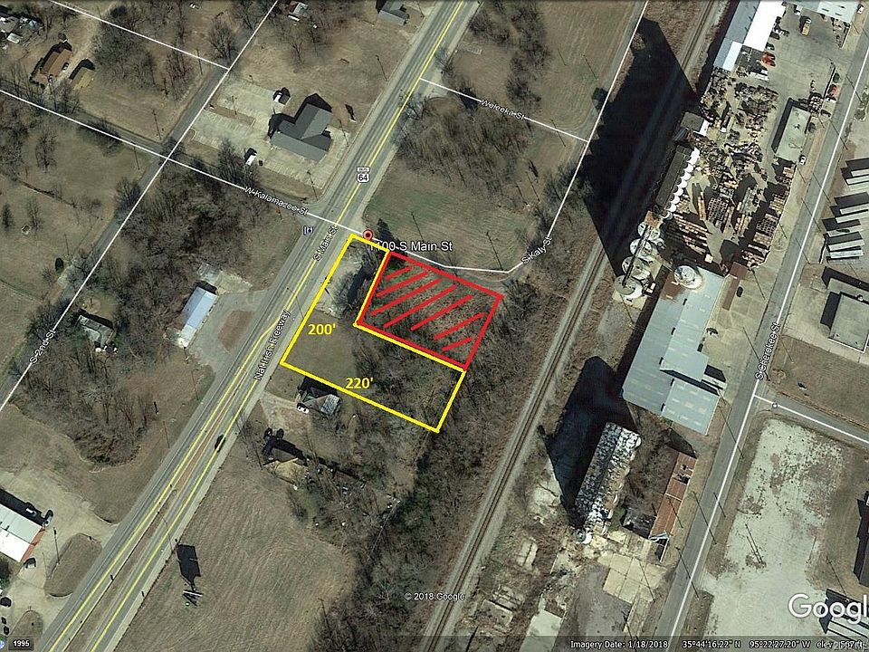 Building consists of 588 sq ft - could be used as an office or small retail location. 200 feet frontage on Main Street. Property behind building could be purchased also for additional minimal cost (would then give you 200x220). Aerial in photo outlined in yellow - additional property outlined in red.