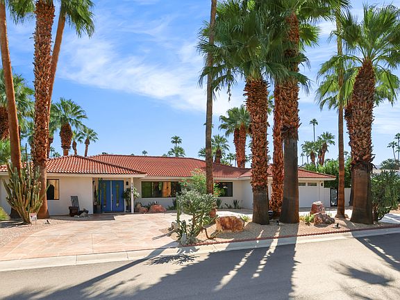 ''Emerald Palms'', a contemporary masterpiece in sought after ''Deepwell Estates''. Clean lines & magnificent curb appeal can be experienced upon entering this lovely modern home with remodeled circular driveway and lush desert landscaping of exotic palm trees, fruit trees and flowering shrubs. Upon entering the home you will experience an open concept floor-plan with neutral tile flooring throughout. The Living room & formal Dining room have unobstructed views of the mountains and neighborhood. A cozy seating area next to the new stacked-stone fireplace is a great place to relax on a cool winter evening. The rear patio was enclosed offering addition sitting area, informal dining and a wall of sliding doors overlooking the sparkling swimming pool & rear yard. The Kitchen is a chefs dream with newer stainless steel appliances, gorgeous neutral counter-tops and white cabinetry. The Master suite is large & inviting and sits at the rear of the home with views of the pool. The guest rooms share the same wing separated by a fully remodeled bath. At the opposite end of the home features the powder room, laundry closet, & entrance to the 2-car garage w/new tile flooring and a plethora of storage cabinets. Owned solar too! Deepwell Estates is one of the most desirable neighborhoods in Palm Springs. Once you experience this incredibly clean updated property you won't want to leave. Close proximity to shopping & entertaining venues. Luxury redefined!
