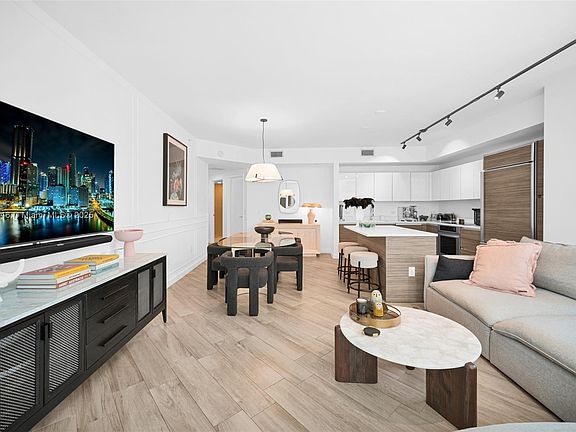 Millecento: Upscale Brickell Living unfurnished. Chic gray wood tiles, custom closets, premium shades, floor-toceiling windows, sleek stone counters. Balcony, in-unit washer & dryer, pet-friendly. Italian design, spa, clubhouse, resort deck, theater, 24/7 security., attended lobby. Located in the heart of Brickell, Miami's vibrant financial district, minutes from restaurants, shops & entertainment venues of Mary Brickell Village & Brickell City Center. Sophisticated Italian design.10th floor view of shopping and city.