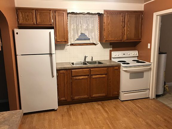 Cute 2 bedroom, 1 bath home offers off street parking and attached 1 car garage. It has newer flooring and windows, custom cabinets, updated gas furnace, air conditioner, and gas water heater. Nice size laundry located on the main floor with washer and dryer. The spacious kitchen comes with refrigerator and stove(can be either gas or electric). Conveniently located close to park and schools. There is a large fenced in back yard with double gates.