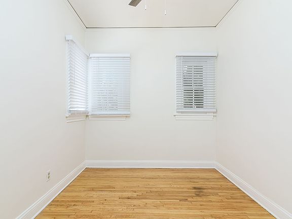 Faux fireplaceSleek white cabinetryStunning antique spanish tileService porchWindows on two sidesRich wood floorsGenerous closet