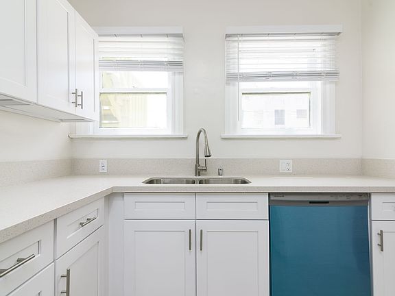The spacious living room welcomes you with French-style windows, a faux fireplace, and a large closet. The brand-new kitchen boasts sleek white cabinetry, white stone countertops, and a full suite of stainless-steel appliancesperfect for cooking and entertaining.