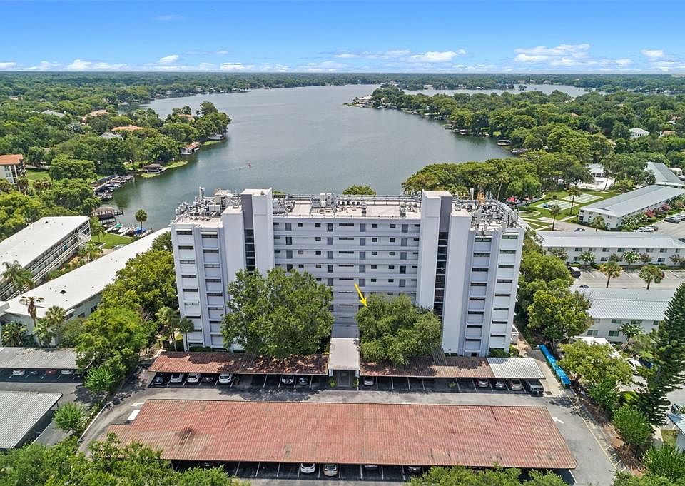 Wake up to every sunrise from your bedroom window looking straight down the long view of Lake Maitland, the largest lake of the desirable Winter Park & Maitland Chain of Lakes. This 2-bedroom, 2-bath condo within West Cove Condos is centrally located in close proximity to a variety of restaurants, Lake Lily Park, Enzian Theater and easy access to Interstate-4 from Lee Road or Maitland Blvd. The primary bedroom looks out to the lake, has a spacious walk-in closet and offers an ensuite bath complete with tub and shower combo. The guest bedroom has built-ins within the closet, a shelf above the bed, and an adjacent bath with shower. In the hallway is a ventless washer & dryer. The kitchen is fully equipped with GE appliances (fridge, microwave, range, dishwasher), solid wood cabinets with both doors and drawers, and a pass-through to the dining area for entertaining. The dining and living areas create an open great room with views of the lake through the 8’ slider doors. This unit is being sold As-Is and is move-in ready except for replacing the carpet, but it is priced to give you the opportunity to renovate as you wish as this is the most sought after lakefront condominium complexes in the area. Note that the schools are Dommerich Elementary, Maitland Middle and Winter Park High. The monthly association fee (lower than most lakefront complexes) includes access to the lakefront docks (boat slips assigned based on availability), work out room, lobby area for entertaining, heated swimming pool and spa, grilling area with sitting space, storage racks for canoes, kayaks and paddleboards, laundry room on each floor, cable and internet through Spectrum, assigned and guest parking, secured elevator access, dog walking path, plus water, sewer and trash. Best of all are the views off your spacious lakeview balcony of the Space Coast rocket launches, fireworks and sunrises. This complex is financially sound with the SIRS completed and reserves fully funded, the roof was replaced in 2024, the Milestone Inspection and all repairs were completed in 2025, and the renovation of the pool & spa will be completed in July.