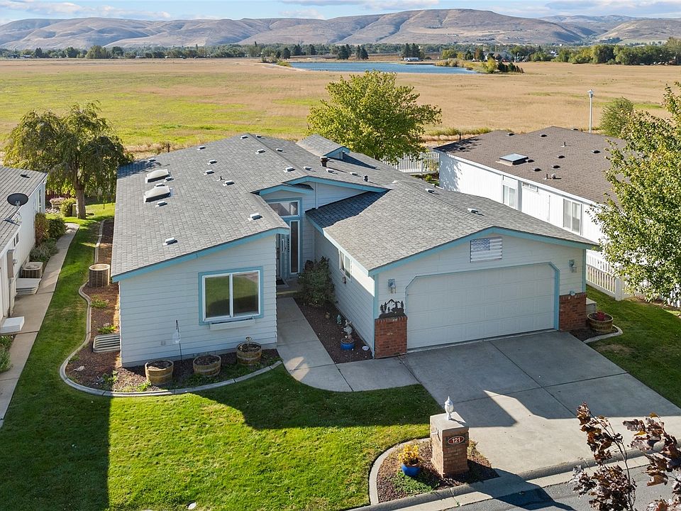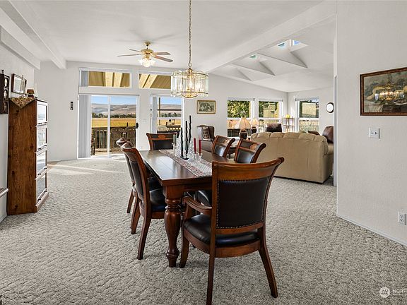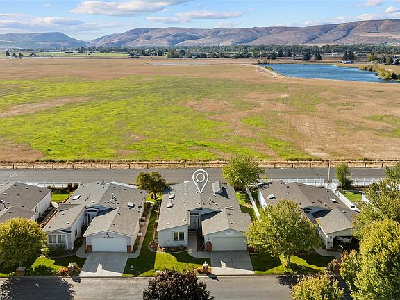 This triple wide manufactured home has 1804 sq. ft. of open living space and in the best location within the 55+ Rosewood community. The large living room has VIEWS to the south of local farmlands and Manastash Ridge that are unobstructed. The kitchen opens into the dining area and includes seating at the breakfast bar. The primary bedroom has a walk-in shower & walk-in closet. The office (or use as a 2nd bedroom) is located at the opposite end of the home and has some built in storage/shelving. The backyard and outside living area are out of the wind on the south side of the home. The large 2-car garage is attached. New roof 2017. Community club house in this well loved neighborhood in Ellensburg!