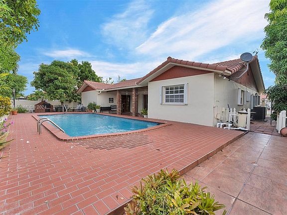 LARGE CORNER(7,869 sqft.lot) ONE STORY 4 Bed,2.5 Baths SINGLE FAMILY HOME w/ POOL & AMPLE TERRACE, for Sale!! Perfect for ENTERTAINING, the property features:BUILT-IN BARBECUE, plenty of room for family gatherings in the PAVED PATIO, CABANA BATHROOM, French DOUBLE DOORS leading from the family, living, & master bedrooms directly to the pool area. Additional features: PAVED CIRCULAR DRIVEWAY, 1-car garage, black GRANITE kitchen w/STAINLESS STEEL appliances, PLENTY OF CLOSET SPACE, whole-house CENTRAL VACUUM, ACCORDION SHUTTERS & many fruit trees. Roof is from 2011. Built in 1988, this exceptional home is conveniently located within walking distance to FIU, supermarkets, pharmacies, banks, gyms, restaurants, Starbucks, easy access to turnpike and 836 & no HOA fees! This home is a must-see!