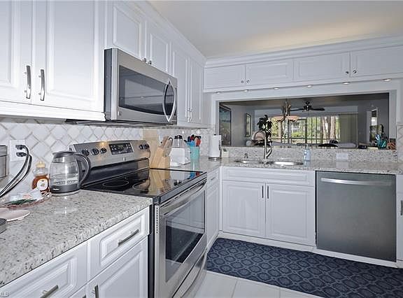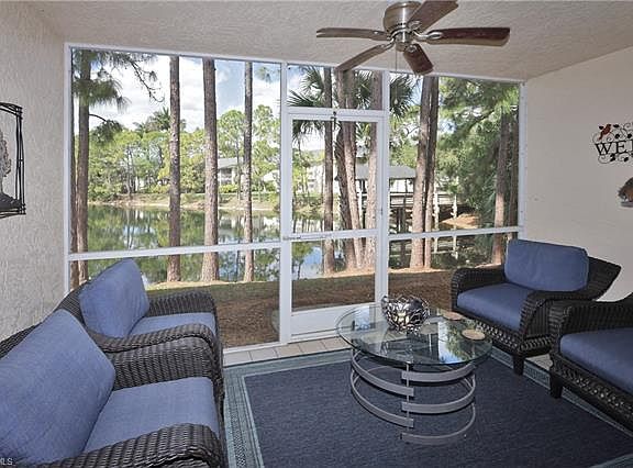Everything in this condo has been replaced/updated starting from the kitchen cabinets with pull out shelving, appliances, counters and flooring. The bathrooms have been totally redone too. The central air conditioner has been replaced. New roof in 2019. This lovely 1st floor unit is so peaceful overlooking the pond and this condo comes with a carport. Cable and water are included in the condo fees. Westgate at Imperial Golf Estates is a gated community and there is a private 36 hole country cub which is optional. You do not have to join. Westgate has 3 pools, a tennis court, fishing pier and a clubhouse. The condo is only a couple of miles to the beach and it is close to all shopping, I-75 and the airport. Just move in as this condo comes furnished.