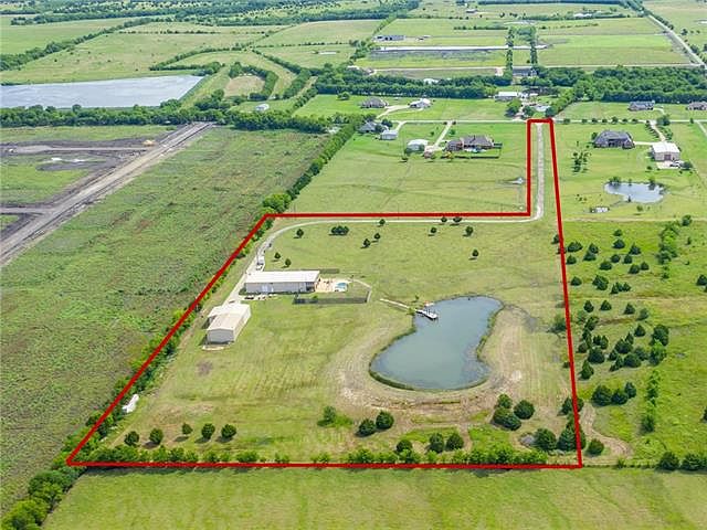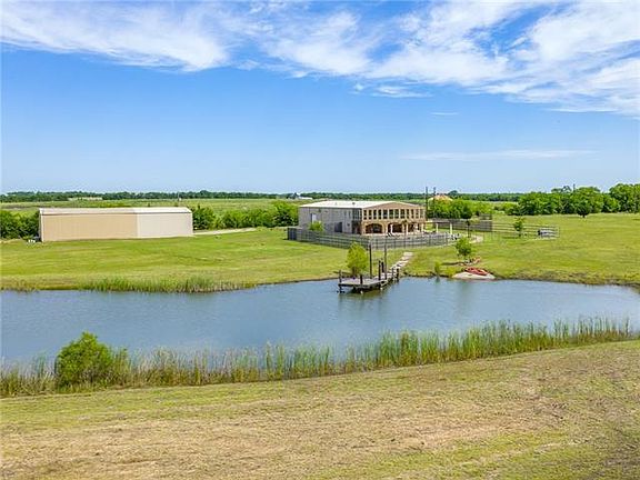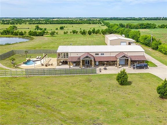 Entertainment central! Huge custom barn-dominium with in-ground pool on 14 secluded acres in Rockwall ISD. Gorgeous countryside & private lake views, 40 minutes to Dallas, but a world away. Multiple living areas for work, play & relaxing including sunroom, office, exercise rm, man cave, den; custom tile galore; one BR down; master & 3BR plus game rm up; open concept living-dining-kitchen. Attached 50x50 insulated workshop-garage with fireplace & HVAC. Additional metal building with carport, rollup doors, & two apartments w HVAC - on site materials & fixtures to finish the 2nd apt will stay. 2 RV hookups, 2 septics. Projects in process to be finished by buyer. Live, work, play all in one place!