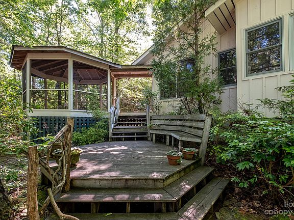 Pull out your vintage rugs and antiques to make this wonderful mountain cottage on over 10 acres come alive! This home was built in the early 1990s and intended to emulate a cottage from the early 1900s with the extensive use of wood throughout- floors, walls, and tall ceilings. There was also an addition made to the back of the garage with a separate room and full bath. Located off of Reasonover Road, the location is quite private with over 10 acres of land covered in native mountain laurel, rhododendrons, and ferns, and an added bonus- less than a mile from the Fawn Lake entrance of DuPont State Forest, full of hiking trails and some of the most magnificent waterfalls you will ever see! There are two fireplaces in the home and one is located in the spacious kitchen with its large windows and extensive workspace. Outdoor living is always important in the mountains and this home does not disappoint with a year-round sunroom, covered front porch, and screened gazebo. Great value!