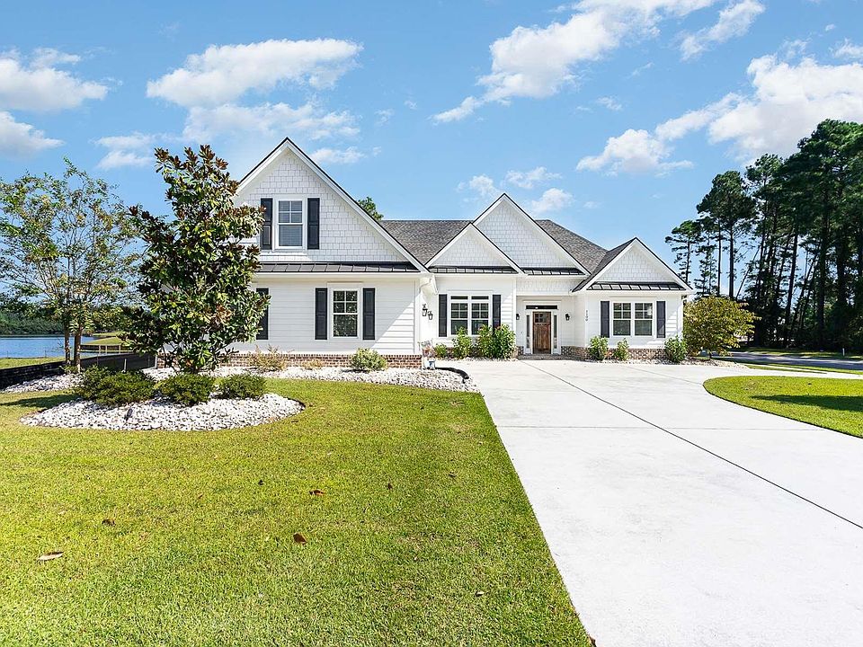 Situated on a large corner lot, this stunning 4 bed 3.5 bath lake view home located in the desirable golf course community of Wild Wing Plantation is a must see! No detail has been missed in this gorgeous home that boasts HardiePlank siding with brick trim on the exterior, an oversized side load garage, beadboard doors, engineered hardwood floors and crown molding on the first floor, tile floors in the baths and laundry room, ceiling fans throughout and a covered patio with wood ceiling and ceiling fan. Wonderful floor plan is perfect for entertaining and features a large foyer, a formal dining room with tray ceiling and spectacular living room with coffered ceilings, a cozy brick front fireplace, a built-in bookcase and direct access to the patio. Meal preparation will be a joy in the gourmet kitchen with stainless appliances, granite counters, a work island, a gas range, subway tile backsplash, a breakfast bar, tons of a cabinet space, a pantry and a large breakfast nook with room for everyone to gather. The luxurious first floor master suite features a tray ceiling, huge walk-in closet and bath with double sink vanity and walk in tiled shower. On the first floor there are an additional two bedrooms with abundant closet space, a second full bath with vanity and tub/shower, a laundry room with folding counter and a guest half bath. Upstairs, your guests will love the private ensuite bedroom with walk-in closet and full bath with vanity and tub/shower and this would also be a great media room or playroom. Outdoor enjoyment is guaranteed with the private patio where you can relax with family and friends and enjoy those spectacular lake views and your children and pets will love the expansive fenced yard! The home also has two HVAC units, a wood-stained front door, upgraded light fixtures, storage space in the attic and an extended driveway for additional parking. Amenities at Wild Wing Plantation are some of the finest in the area and include two swimming pools, a hot tub, several lakes and day docks with boat ramp, boat and RV storage, a children's area with water features, tennis and pickle ball courts, basketball courts, a clubhouse with exercise and activity rooms, a driving range and a championship golf course with clubhouse and restaurant. Just minutes to shopping, entertainment, restaurants and the beach! If you have been searching for your dream home, this is it! Schedule an appointment today and see everything that this home has to offer!