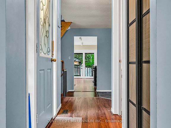 Rare end unit Freehold Link Townhouse located in Glen Abbey. 3 Bedrooms, 2.5 Bathrooms, Kitchen with breakfast area and walk out to back deck. Partially finished basement offers a pub style bar. Interlock walkways down each side of the house both with gate access to a fully fenced in backyard make this home feel like a detached property. Side entrance from outside to garage. The backyard features mature trees, an interlock patio, wood deck, raised garden beds, garden shed and storage shed. Close to shops, trails, parks, public transit, schools, library, community center and more. Easy access to major highways.