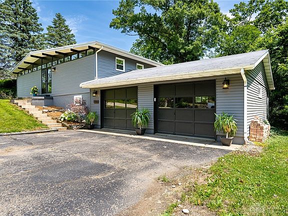 A modern retreat awaits in this unique 3-bedroom, 2-full-bath home! Built into a hillside, this beautifully renovated home offers the best of both worlds. Sleek, smart updates combined with a serene natural setting is sure to delight! Striking panoramic views of the private wooded rear yard through floor-to-ceiling windows. The expansive main floor is open, connecting the kitchen, living, and dining in one fluid space. Clean white cabinetry and stainless steel appliances are a few of the many features of the gorgeous kitchen. The breakfast bar is sure to be a favorite spot for the kids! Lovely shiplap ceilings and wood beam-style trim draw you at the door! Three bedrooms on the main level plus a full bath. The fully finished walkout lower level includes two more large rooms – a great recreation room and a room designed specifically for the musician. Jam sessions are a must! The basement has a 2nd full bathroom plus a laundry room. Two wood-burning fireplaces (No known issues, however not warranted). Deep 2-car attached garage. Plenty of seating on the lower and upper decks and an above-ground pool! The upper deck overlooks the pool and offers beautiful views of the spacious backyard. Storage shed for all your outdoor equipment. This home has it all! schedule a tour today!