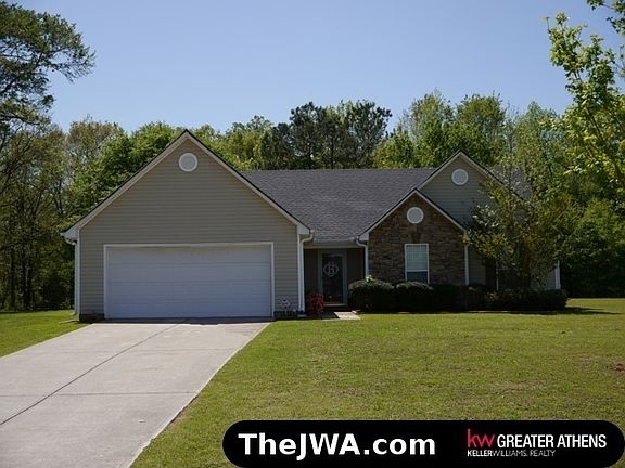 This amazing single story home is found on a large 1.2 acre lot in cul-de-sac lot located in the heart of Watkinsville in Oconee County! One will be able to enjoy their weekends because of this homes low maintenance exterior. This property is also full of upgrades including bamboo floors located throughout the main living space and stainless steel appliances in the eat in kitchen. There is also a bonus room on the main level that can be used as an office or play room that has french doors that open to great room. The great room is vaulted and has a stone surround fireplace. This one is in great shape and cute as can be!