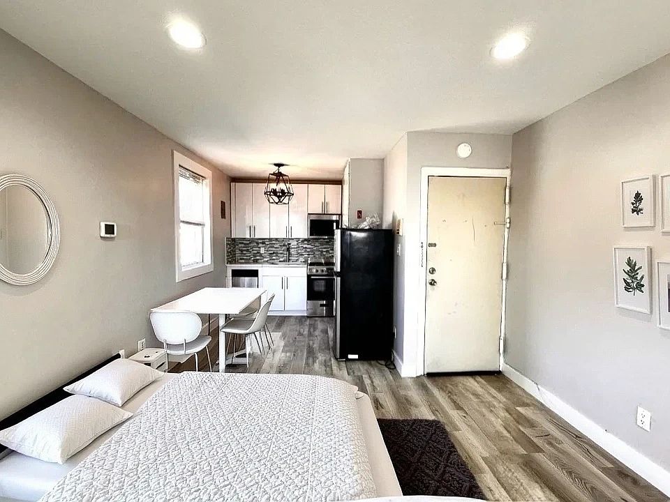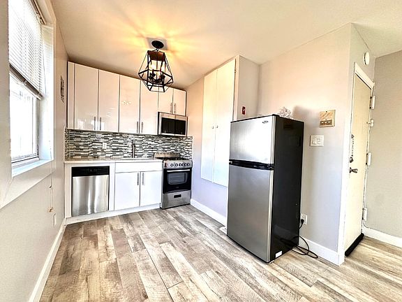 Charming studio apartment featuring a modern full bathroom and abundant natural sunlight throughout. The kitchen is thoughtfully designed with elegant marble quartz countertops and comes fully equipped with sleek stainless steel appliances, ideal for both everyday living and entertaining. Convenient on-site laundry facilities are available at no additional cost to residents. Street parking is readily accessible, offering added flexibility for commuters and guests alike. This home has been virtually staged to showcase its full potential. Pet-friendly accommodations are available, with an associated fee.