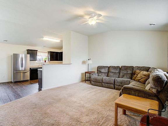 Welcome home to easy one-level living in the White Tail Ridge development! This home features a spacious kitchen with tons of counter space, a gas SS stove, and breakfast bar which overlooks the large living room and informal dining. Master bedroom has a large walk-in closet plus a walk-thru bathroom. Second bedroom overlooks the backyard and also includes a walk-in closet. Great corner lot with large front and back concrete patios, retractable awning, storage shed and firepit. This development hosts a disc golf course within the community, and just a few blocks away, is VeteranâEUR(tm)s Park, which includes a playground, picnic area, tennis courts and basketball courts.