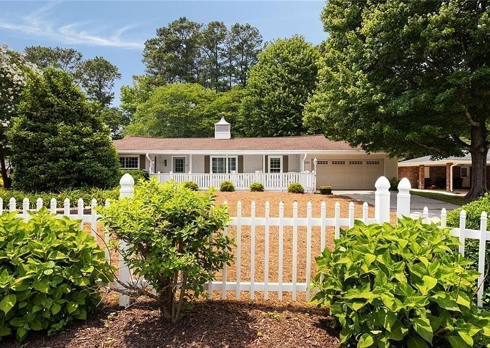 Welcome to your enchanting Cape Cod-inspired retreat, where a pristine white picket fence and a beautifully renovated exterior invite you into a cozy, single-level ranch filled with timeless elegance and incredible curb appeal. This charming home offers the perfect haven to enjoy all that nearby Downtown Roswell has to offer, nestled in a peaceful and private sanctuary. As you stroll through the picturesque front yard and approach the inviting porch, you’ll enter this lovely 3-bedroom, 2-bathroom four sides Brick ranch. The spacious formal dining room provides an ideal setting for holiday gatherings and special occasions. The seamless flow guides you into the formal living area, complete with a warm, inviting fireplace. From here, you can admire views of the expansive sunroom, which overlooks a large covered deck and a beautifully landscaped botanical backyard oasis. The well-appointed kitchen features elegant stone countertops and ample cabinetry, complemented by a walk-in laundry and pantry. There's also a dedicated office space that can easily be converted back into a garage, offering flexibility to suit your needs. Down the hall, you'll find a thoughtfully designed shared bathroom with dual vanities, along with two secondary bedrooms—perfect for family or guests. The owner's retreat is privately situated at the rear of the home, boasting vaulted, beamed ceilings and serene views of the backyard. The spacious walk-in closet and en-suite bathroom make this a perfect retreat after a busy day. 2 Car garage can easily be converted back, as 1 side is currently being used as the interior office. Freshly painted and meticulously maintained, this delightful home is located just 1.5 miles from the vibrant heart of Downtown Roswell. Don’t miss your opportunity to own a piece of heaven—schedule your visit to 1100 Tuxedo Drive today! ESTATE SALE JUNE 13-14th.