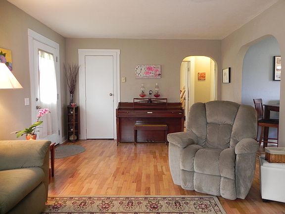 This one-level home was built in 1952 and maintains its vintage appeal. The home features hardwood floors, high ceilings & curved archways. The living room is light & bright, there's an interior laundry, and one bedroom is extra large (in a converted garage). There's a large backyard with raised garden beds, a shed, patio and mature trees. This home is energy efficient with a ductless heat pump & vinyl windows--and it's move-in ready!