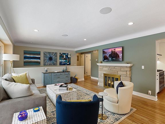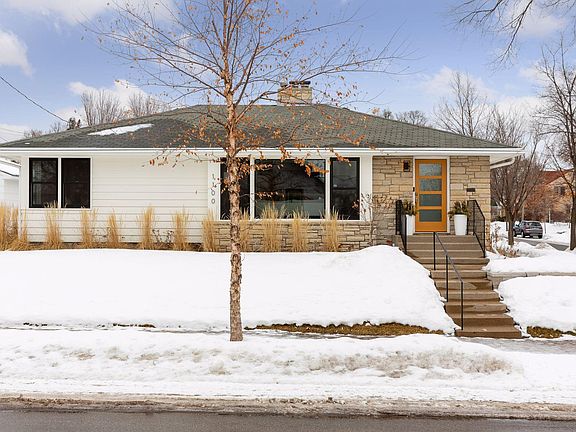 Fall 2019 complete remodel of a classic Mid-Century Modern. New mechanicals, windows, high end finishes & showstopping layout. Open main level offers southern exposure to flow throughout. Living room with wood burning fireplace & hardwoods opens to the well-appointed dining with built-in seating & chefs’ kitchen. Kitchen includes large center island with seating, $10k appliance package, quartz countertops, granite serving counter, & huge pantry. Main floor owner’s suite with custom walk-in closet & elegant bath. Additional bedroom & full bathroom complete the main level. Lower features a family room, wet bar, wood burning fireplace, two additional bedrooms & ¾ bathroom. Laundry & mechanical rooms offer space for storage. Mudroom with heated floors & access to attached, heated garage with 240v car port & storage systems. Recent improvements include extra parking pad (2 spots), fully fenced backyard with large paver patio, new topsoil & sod, inground sprinkler & front yard landscaping.