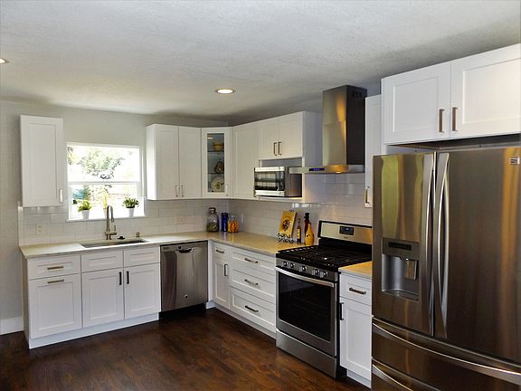 Beautifully renovated ranch home with hard to find 4 BR 2 BA on main level, 5th NC BR and 3/4 BA in basement. Features all new kitchen/bath finishes with quartz countertops. Huge 900 SF private master retreat with sitting area and large walk in closet. Soaking tub, designer shower and double vanity in master bath. Almost 1/2 acre fenced yard, covered patio and large storage barn. One block to park, Pirates Cove and steps to Dry Creek Trailhead. Quiet neighborhood convenient to DT and light rail.