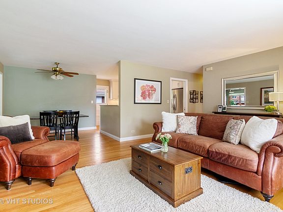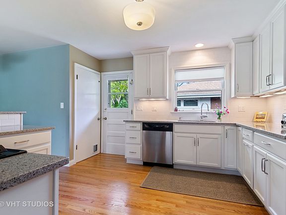 Sophisticated ranch, lovely yard, super location! You'll love the flow of this updated home! Welcoming living room with stone fireplace and hardwood floors, gracefully open to dining kitchen and family rooms. Enjoy this beautiful updated kitchen-white cabinetry, quartz counters, stainless steel appliances & hardwood floors. Cozy family room has access to patio and great views of the lush yard. Quietly tucked on the east side of the ranch are 3 bedrooms with hardwood floors and nice closets. Down the stairs you will find another whole level of living space: gracious recreation room with fireplace, full bathroom, ample storage, flexible 4th bedroom/office and playroom space. Private patio and rear yard with excellent arborvitae screening, Huge emerald side yard perfect for play! Great shed. New Furnace 2018, Updated flooring, kitchen, nice wide driveway. Convenient to town, train, parks, schools, Melas, MP Golf Course! D57 D214 Lions, Lincoln, Prospect This is your new home!