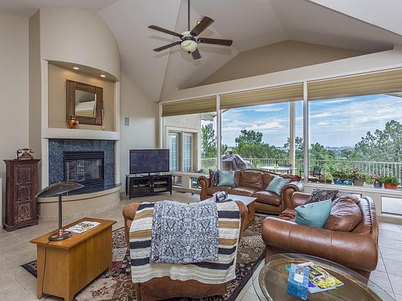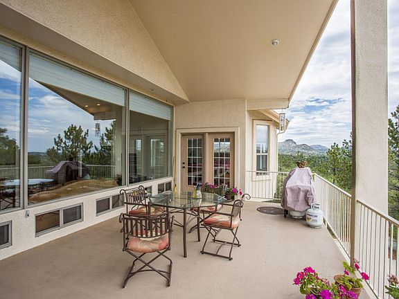 Custom home nestled amongst the tall pine trees offers some of the best sweeping panoramic views that Prescott has to offer and is just 2 miles from the historic downtown courthouse square! All the living space of this home is on one level served by the upper driveway including the main 3 car garage then there is an additional 288 sq. ft exercise room/area (not incl. in sq. footage) as well as 1080 sq. foot 2.5 car add'l lower garage plus workshop (w/220) and half bath on the lower level with inside and outside access! This split bedroom floor plan home boasts tile throughout, soaring vaulted ceilings, walls of windows, amazing covered view deck and totally updated and upgraded kitchen fit for a gourmet chef or master entertainer! Continue...