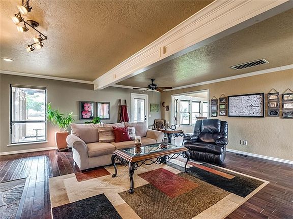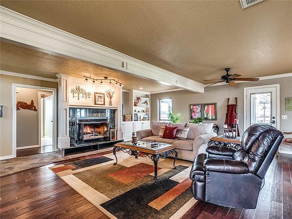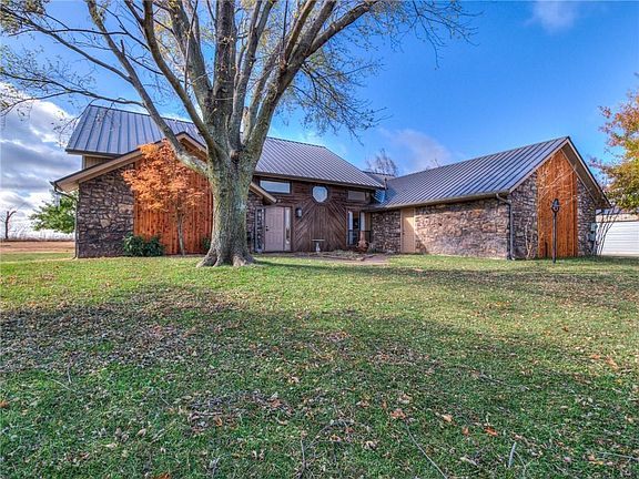 MULTIPLE OFFERS. HIGHEST AND BEST DUE 6 PM SUN 11/15. Stunning acreage in North Edmond. Fully remodeled, well cared for home. Large kitchen w/center island, granite countertops, tiled backsplash, built in stainless double ovens and microwave, slide out shelving, and built in range w/external exhaust. Dining room adjacent to kitchen has natural light and tall ceilings. Living room features wood burning fireplace, built-in shelving and work space. Two bedrooms & 1.5 baths down with master suite and additional bedroom upstairs. Master features walk out balcony with a view for miles. Separate shower and soaker tub with his/hers vanities. Outside you will find a screened in porch perfect for evenings watching wildlife, admiring your landscaping or entertaining guests, Brand new 30x40 shop with LED Lights, ceiling fans and 2 oversized garage doors for conveniently storing all your toys or cars, ready for electric hookup. Dog run w/doggie condo. Geothermal system keeps utility bills low.