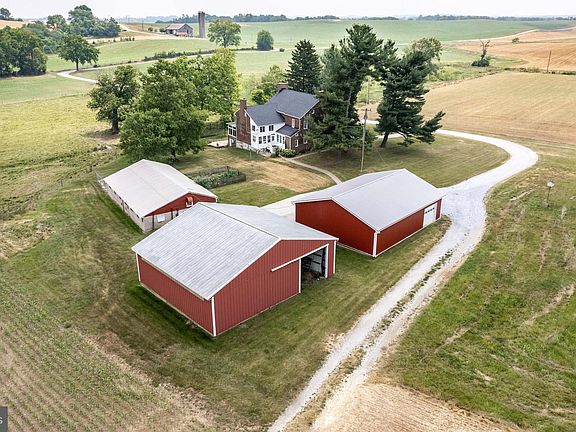*Dream Farmette on a truly peaceful setting*Welcome to 1100 Winters Church Rd*This Farmette features a beautifully renovated large 4,000+ sq ft 5BR 2.5 Bath 18th Century historical home (new roof 2017), a large newer barn, a smaller barn, a multi-purpose chicken house/kennel, & a newer 6 car detached garage (2011)*Both barns built in 1989 are in very good condition*Detached garage is ideal for your vehicles, farm equipment, or hobbies*Amazing views surrounded by lush farmland, distant mountains, pastures, & stream*Inside home main level features wide plank wood floors, custom moldings, exposed beam ceilings, exposed brick, multiple fireplaces, renovated bathrooms, large country kitchen with island, built ins, a light filled sun room, a large mud/laundry room, an office, & a half bath*Upper level has 5 large bedrooms, 2 full baths, a rustic bonus room, & additional stairways*Multiple walk up floored attic access for additional storage*Lower level has a utility room, 2 storage rooms, & a bonus walk out room that could be another bedroom*Currently selling 6 acres with an additional 16 acre pasture for a total of 22 acres* History of 1100 Winters Church Rd Farm: The farmhouse was built in 1806 with bricks that were made on the property. It is situated on 136 acres of beautiful farmland in a secluded valley of rolling hills, woods, and two clear streams and surrounded by fertile productive working farms. The builder was one of seven farmers who formed the nation’s first farmers marketing organization, selling in Baltimore. This was a predecessor of the National Grange and Farm Bureau Federation. It is also believed to have been part of the Underground Railroad. As you enter the main hall, the original four rooms are the dining room and formal parlor on the right and the two bedrooms above them. The rooms to the left below and above were built a bit later, thus the two front doors. The original brick end barn, built in 1811, burned down in 1987. The original kitchen was outside, and some stones from the foundation can still be seen. The property was originally part of Frederick County, so research of the deeds is challenging. The house is very unique with 18th century architecture, hand-crafted woodwork, hardware, most floors are original chestnut, four rooms re-floored with fine oak, nine foot ceilings, fourteen inch thick brick walls, stone foundation, eight original fireplaces, original glass in most of 9 over 6 windows, beautiful center hall, three attics and staircases, two enclosed heated porches, a fully heated, air-conditioned sun room overlooking the patio, stream, both farm and wild animals, and a full variety of wild birds. The house is fully restored with care to preserve historical features. Beautiful crystal chandeliers grace the formal parlor, dining room and great hall. The kitchen was completely restored in 1985, opening up the fireplace, exposing the half- sawn oak floors, and Master Cabinet Maker, William Duble installing hand crafted oak cabinets, butcher block counters and pantry to match the original one that has a dumb waiter. Other things to consider: The many beautiful views from the sunroom, sunset from the upstairs sun porch, deer in the rolling hills from the front porch swing, walking or riding horseback on the farm, growing vegetables, herbs, flowers, or exploring the woods and streams.
