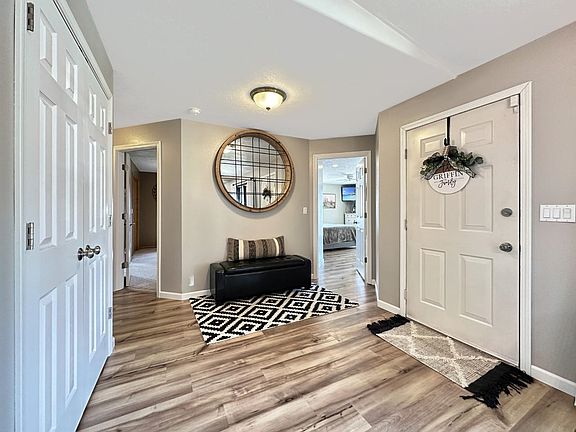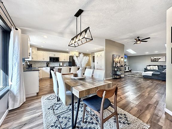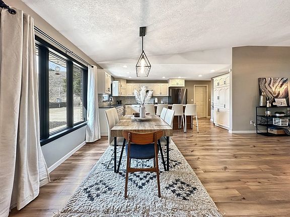 Welcome to your retreat at 11000 Country Rd. 15 W, where serenity meets sophistication on 10.57 acres of pristine countryside. Nestled into the hillside, this sprawling property offers a captivating escape from the everyday hustle and bustle. A grand circular drive leads you to the main residence, flanked by a spacious shop, inviting guest cabin, and sprawling grounds awaiting your exploration. Spanning nearly 3,000 sq.ft., this single-level abode boasts 4 bedrooms, 3 baths, 2 expansive living areas, a versatile office/gym space, and a chef-inspired kitchen that beckons culinary creativity. Immerse yourself in the seamless flow of the open layout, perfect for entertaining guests or unwinding in solitude. Recently renovated with meticulous attention to detail, upgrades abound, from luxurious vinyl plank flooring to designer lighting fixtures, fresh paint, and new trim throughout. The heart of the home, the kitchen, shines with ample cabinetry, quartz countertops, and top-of-the-line stainless steel appliances. Two generously proportioned living areas offer versatility, with one featuring skylights for abundant natural light and the potential for a future fireplace, while the other presents ample storage options, plumbing for a wet bar, and convenient access to the garage. Retreat to the master suite oasis, complete with a private updated bath, a walk-in closet, and patio doors opening to breathtaking landscape views. Additional bedrooms provide ample comfort, while the dual-sink bathroom facilitates seamless morning routines. Outside, a 24' x 36' heated attached garage offers space for vehicles and projects alike. The home is also complemented by a 10’x18’ concrete patio and a 16'x21' composition deck, ideal for outdoor relaxation. Explore the vast outdoors, where a 32'x54' shop with concrete floor & loft space, a chicken coop, and automatic waterers for horses and cattle await. A charming guest cabin with a wood-burning stove provides a tranquil spot to savor morning coffee or stargaze by night. With septic, rural water, and a well for irrigation, every convenience is at your fingertips. Embrace the opportunity to make this extraordinary rural sanctuary your forever home.